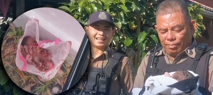 A newborn baby girl was put in a paper bag and left in front of a house in Pattani City with police now chasing the mother for legal action.