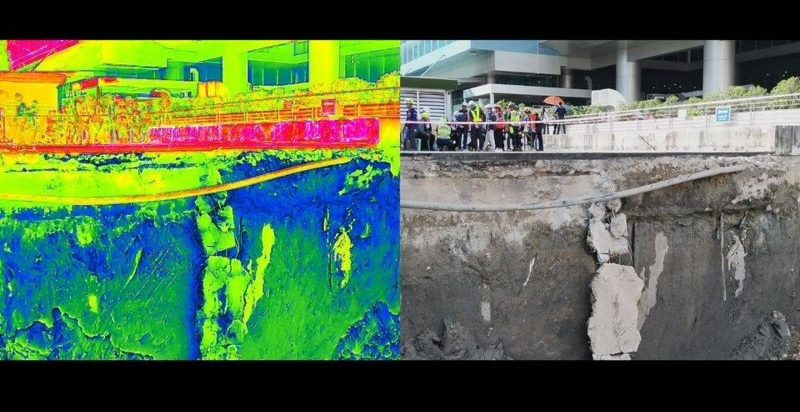 Images taken by thermal cameras around the huge sinkhole on Samsen road show a second collapse is possible due to significant soil loss.